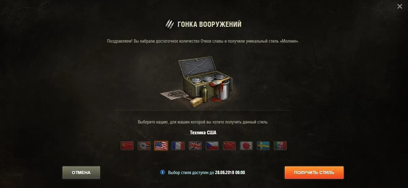 Танк за прошедший ивент на ГК «Гонка вооружений» уже можно выбирать и обменивать (получать) + стиль «Молния» для части игроков.