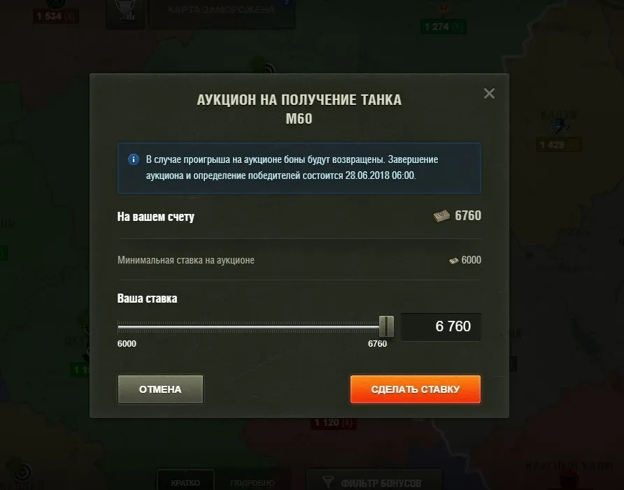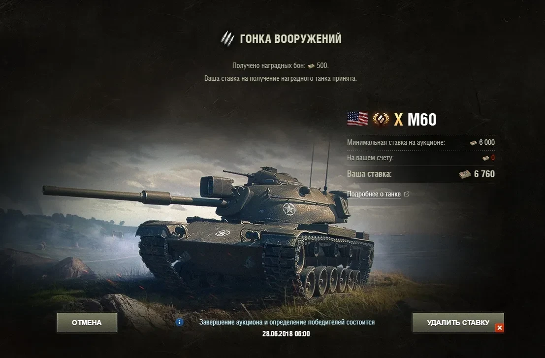 • При завершении аукциона игроки, сделавшие 300 наибольших ставок, получат танк, выбранный ими в окне ставки.