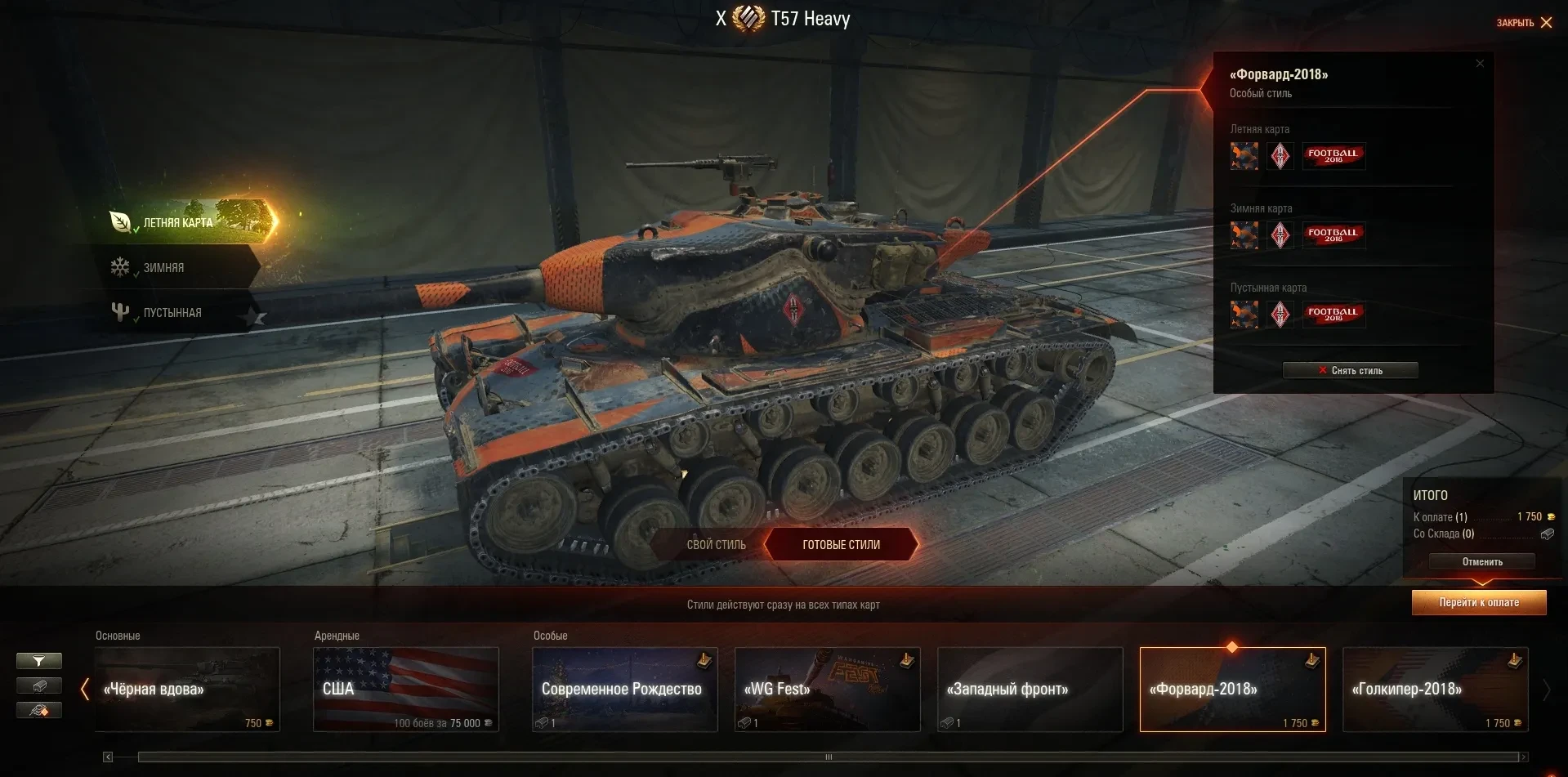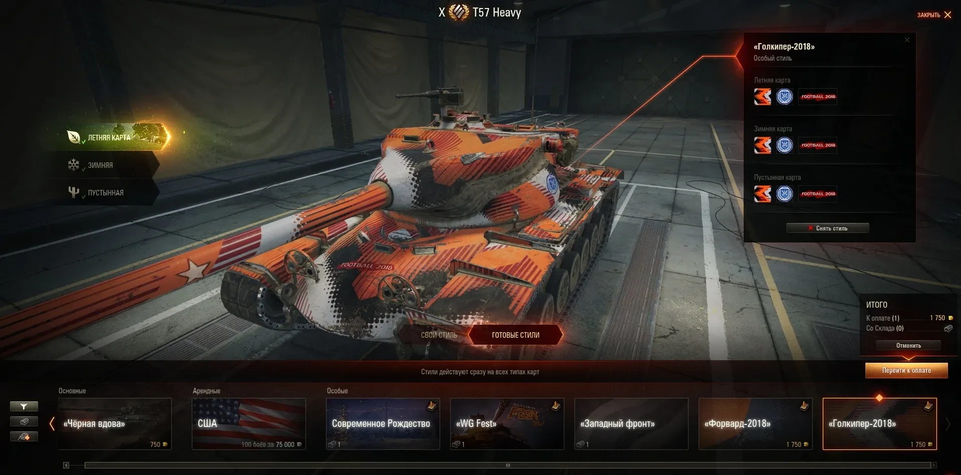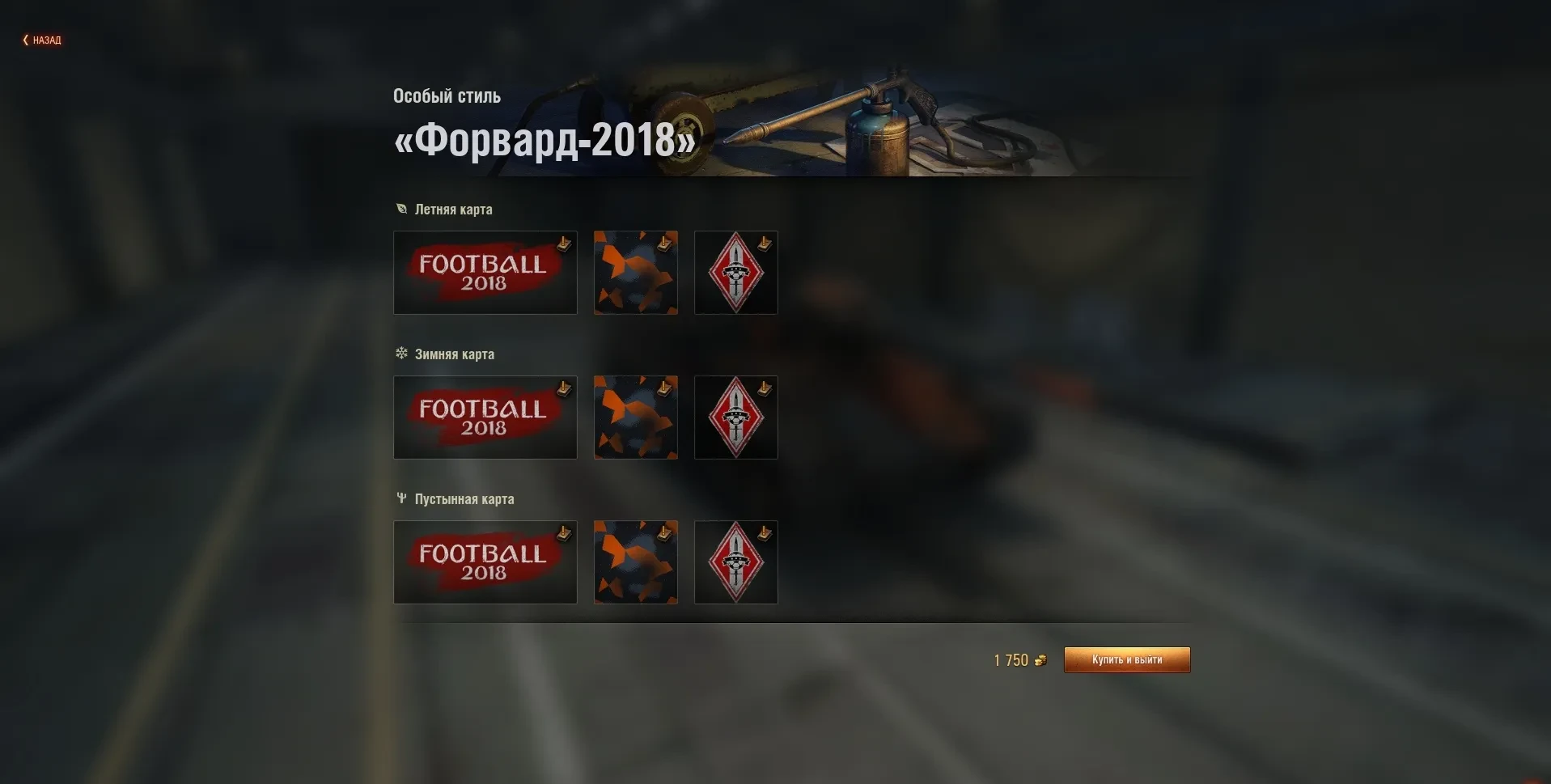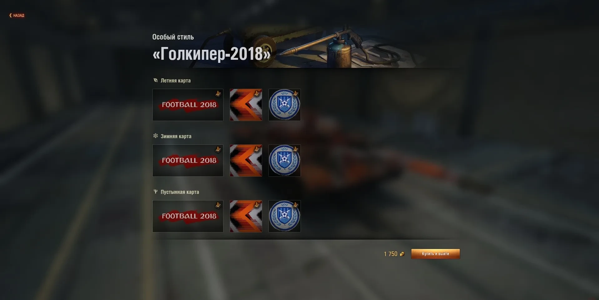 Во время данного события (Танковый футбол) в окне «Внешний вид» можно купить 2 новых футбольных стиля — Форвард-2018 и Голкипер-2018. Стоимость 1750 голды.