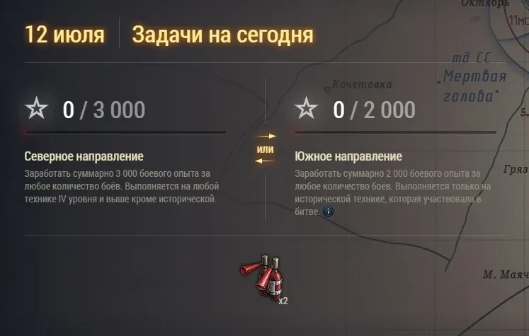 Задачи Южного направления доступны к выполнению на исторический технике, которая участвовала в битве.
