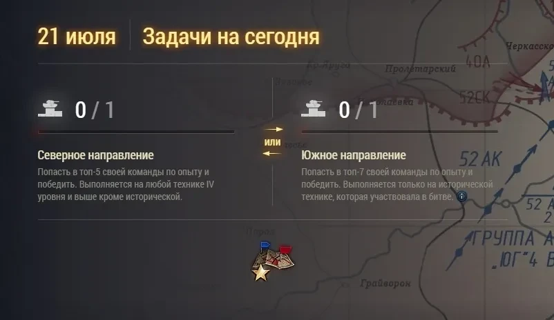 Задачи Южного направления доступны к выполнению на исторический технике, которая участвовала в битве.