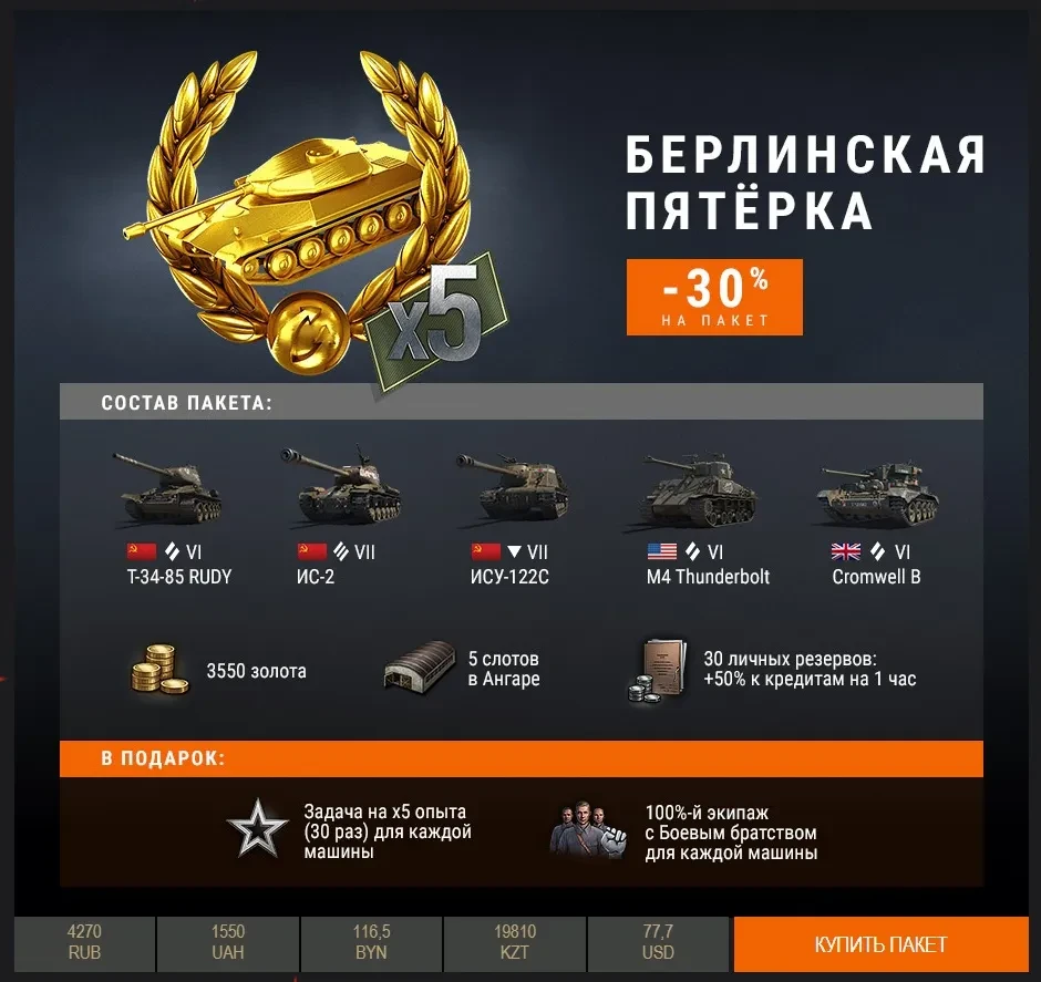 В честь 73-й годовщины окончания Второй мировой войны в Премиум магазине доступны праздничные пакеты с «Берлинской пятёркой»: