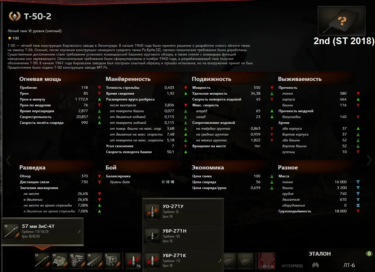 Изменения для Т-50-2 (ЛТ-6, СССР) по сравнению с 1 итерацией: