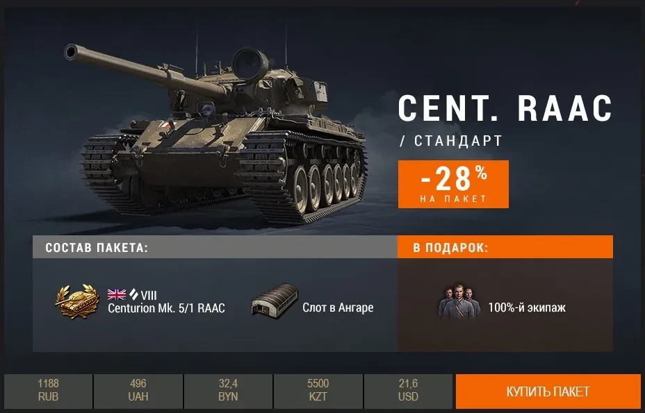 В этот раз танк недели в Премиум магазине — VIII Centurion Mk. 5/1 RAAC . Бонусы и скидки прилагаются. Выбираем свой набор с австралийским «Центурионом»!