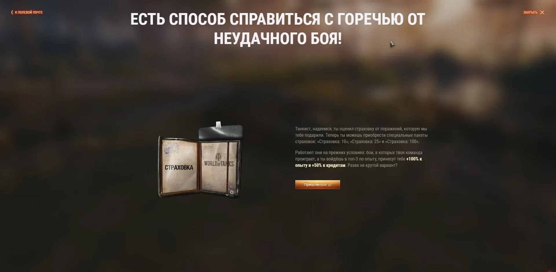 - Штош, похоже после тестов на NA в октябре, но опять же не массово, в продажу и у нас пошла «страховка от поражений». Тем, кому недавно приходила бесплатная страховка, предлагают теперь её купить.
