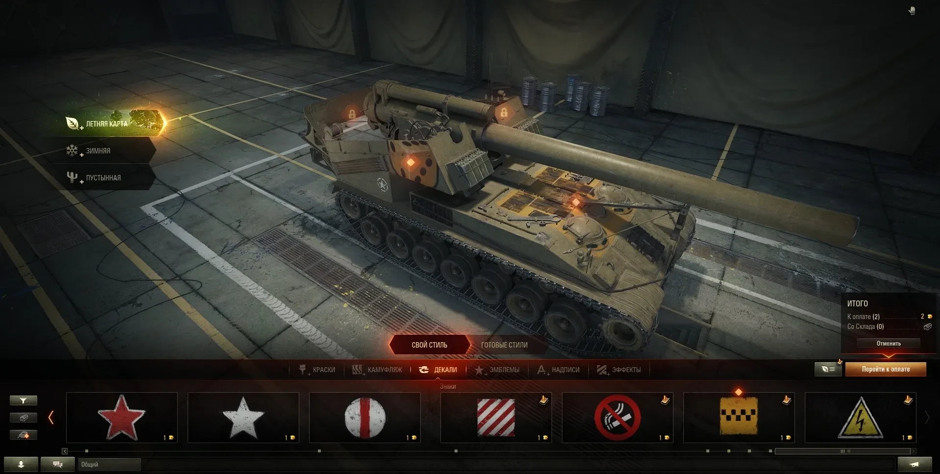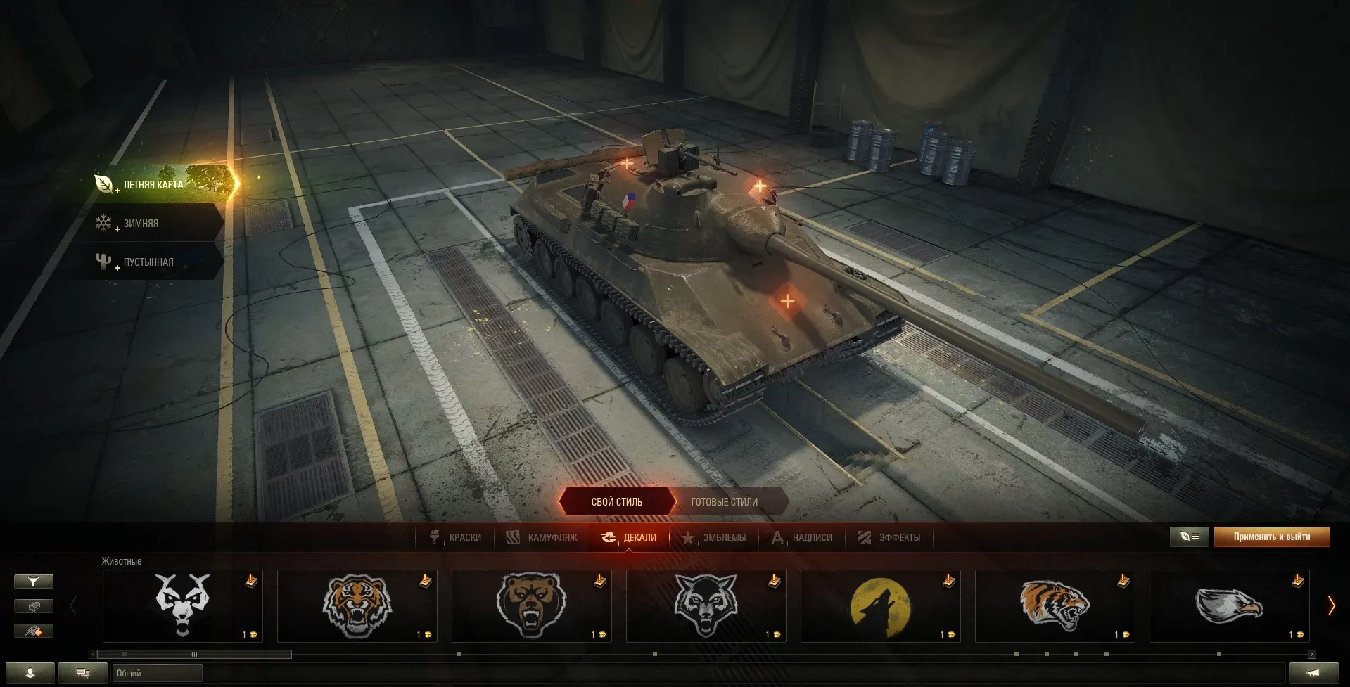 * Декали есть историчные и нет, нанести можно ТОЛЬКО на премиум технику VIII уровня и всю технику X уровня. Для нанесения доступно максимум два слота из 3 на выбор для каждого типа карт и при этом есть целых 3 вида размера самого рисунка.