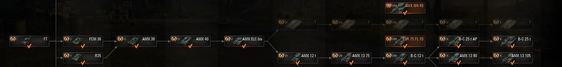 - Ветка французских колёсных танков в World of Tanks начнётся с 6-го уровня. Переход будет от AMX ELC bis к таковой прокачиваемой машине. Тем самым разработчики подтвердили наши наброски согласно файлам в 1.3 тут: второе фото