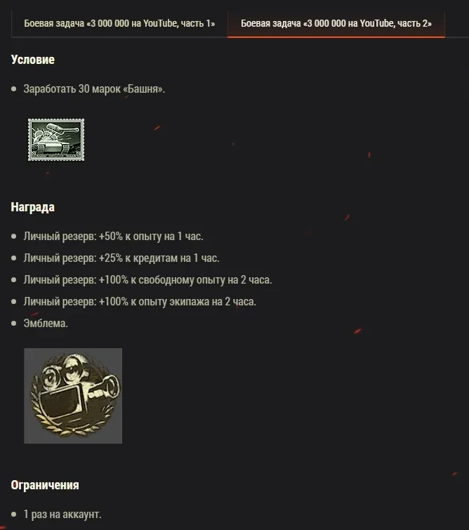 - Боевая задача «3 000 000 на YouTube, часть 1» (В 3 раза больше опыта x15)