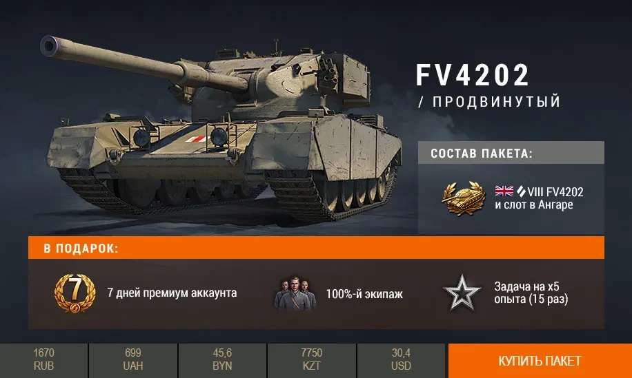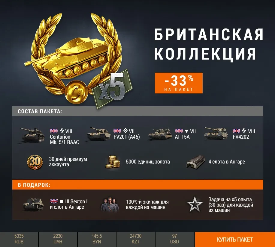 Добавили пять пакетов с танками и плюшками. Четыре из которых содержат в себе: