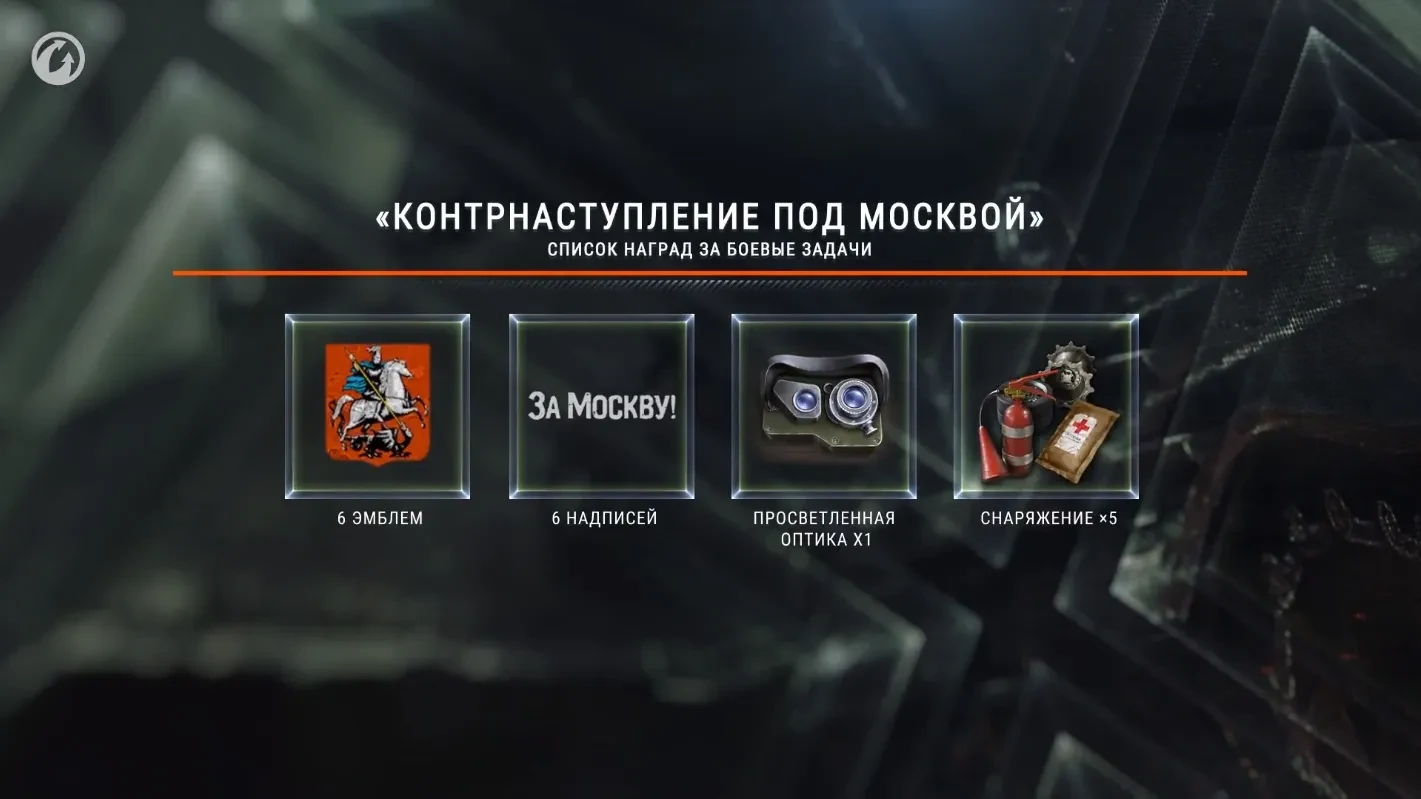 [7 - 10 декабря] Акция «Контрнаступление под Москвой». В 4 раза больше опыта за первую победу в день. А за БЗ: эмблемы и надписи x6, просветленная оптика x1, снаряжение x5.