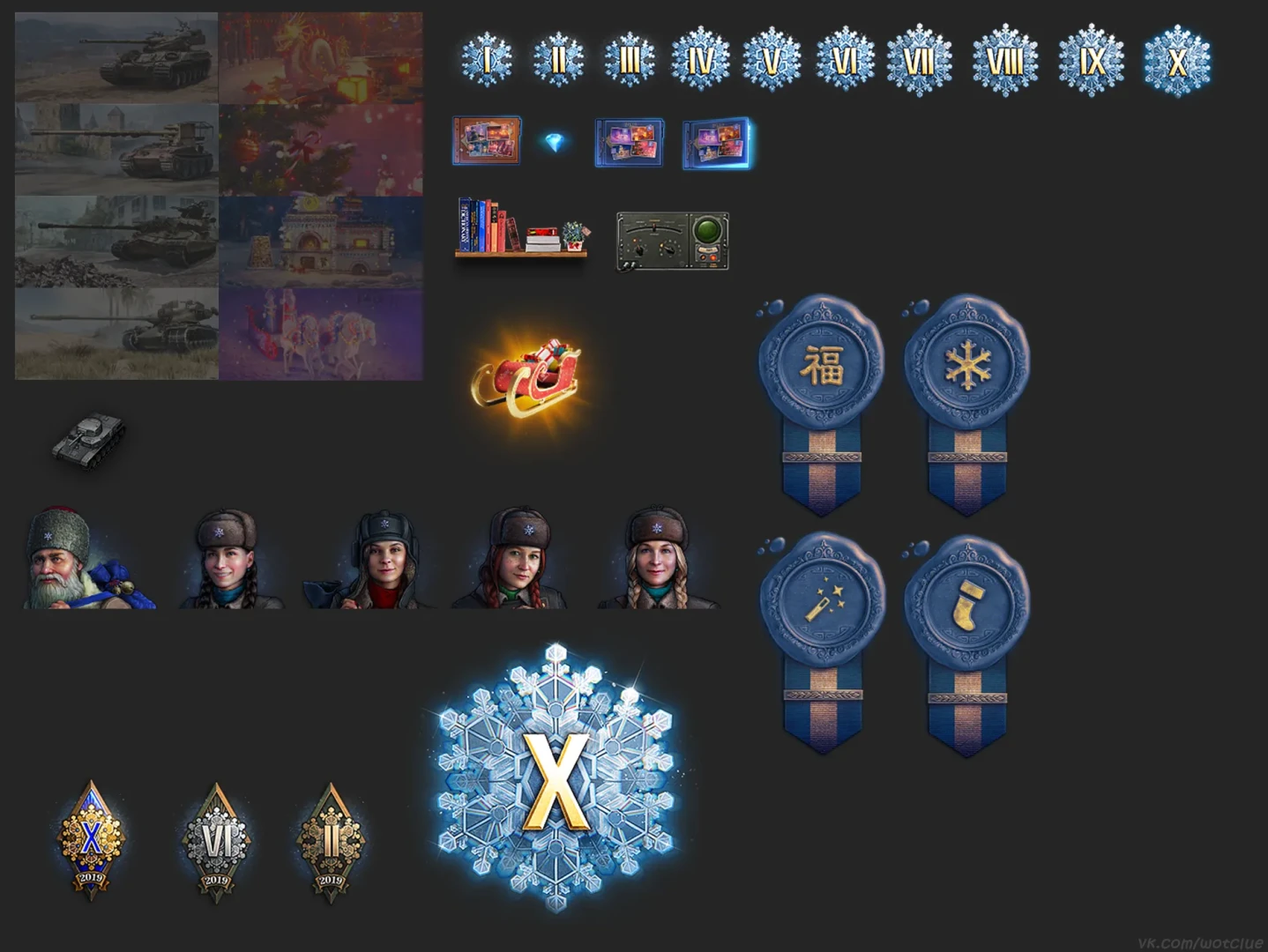 Чем больше украшений расположится на объектах в Ангаре, тем ярче станет атмосфера праздника. Выдаётся всем игрокам, выполнившим необходимое условие в течение специальной новогодней акции 2018–2019.