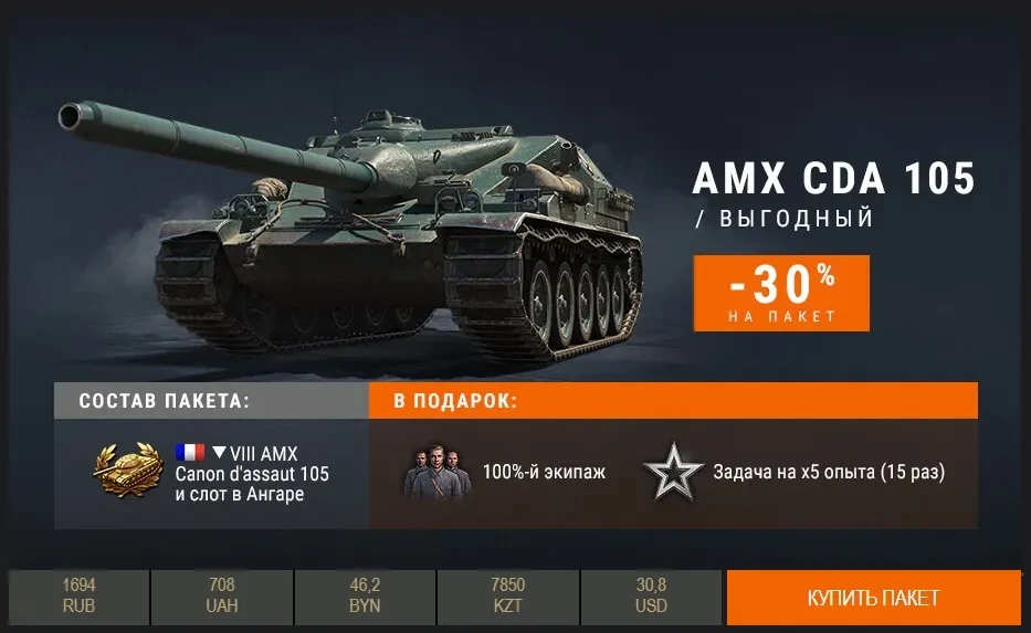 Если вы покупаете пакеты с техникой, которая у вас уже есть, вы получите остальное имущество из пакетов (слоты, экипаж, боевые задачи), кроме этой техники. За неё вам будет начислена компенсация игровым золотом в количестве: