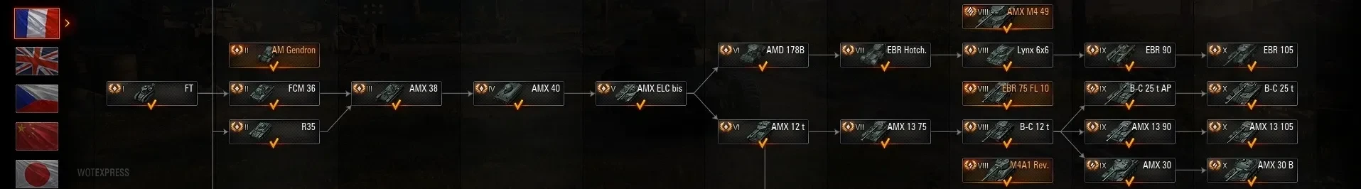 - 6 ур. переход с AMX ELC bis на (Panhard AMD 178B) = 32.030 ex. (ну как мы и говорили примерно). С движка идёт.