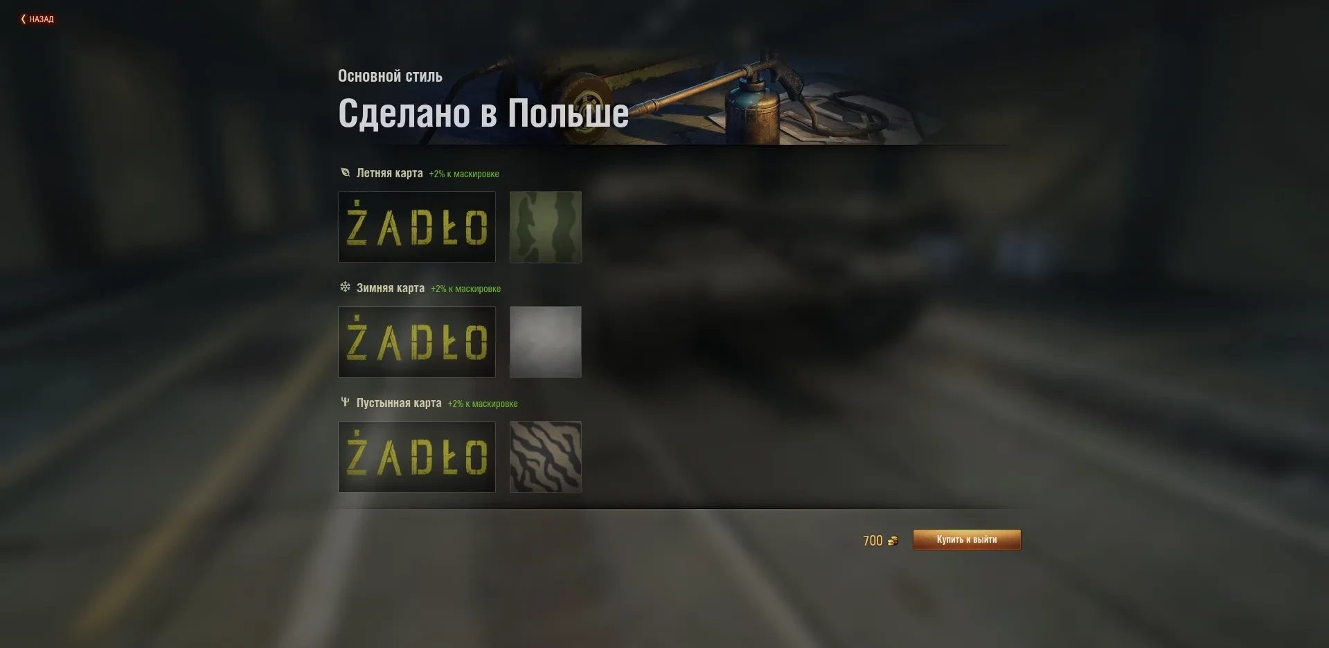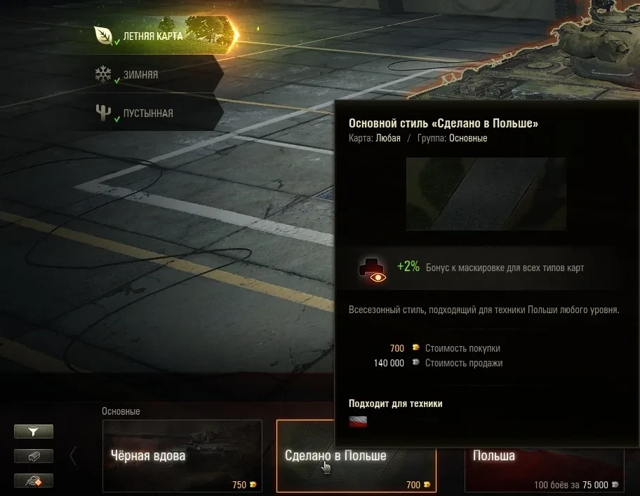 Также ещё в 1.4 World of Tanks (вторая итерация) добавили 11 национальных стилей (категория «основные», на постоянной основе). Это второй таковой для каждой из 11 наций в игре. Самый красивый (только полякам дали новые камуфляжи, в ост. случаях исп. старые) получился для Польши, пока он перед вами отдельно.