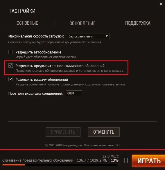 Предзагрузка обновления 1.4 World of Tanks