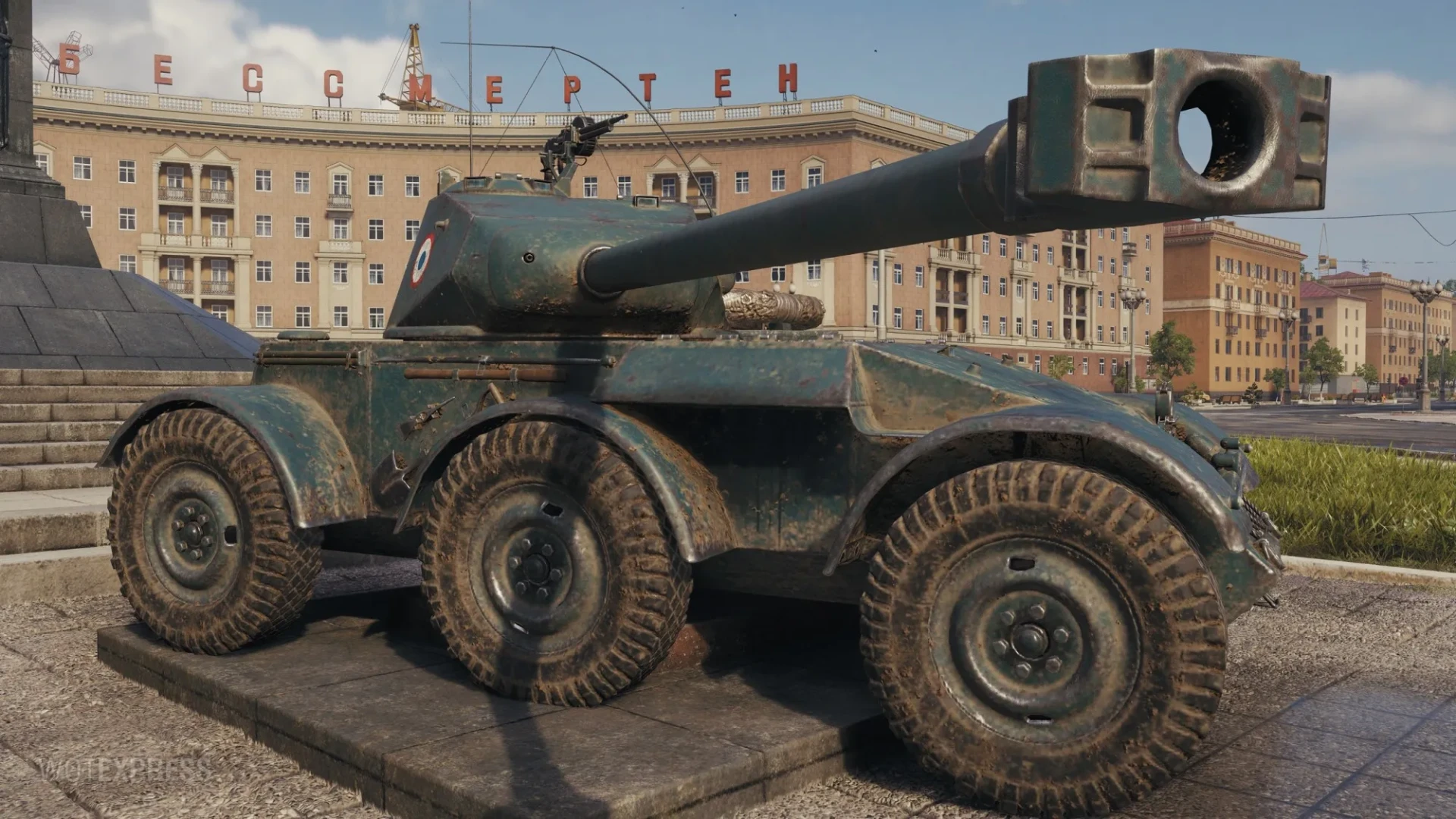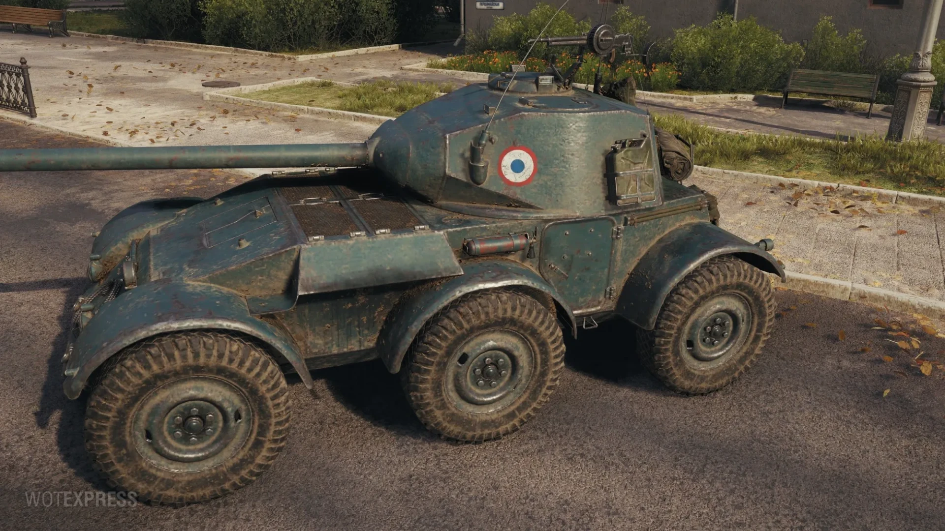 А вот так Hotchkiss EBR (Колёсный ЛТ-7, Франция, прокачиваемый) выглядел в декабре 2018 года на этапе тестирования супертеста.