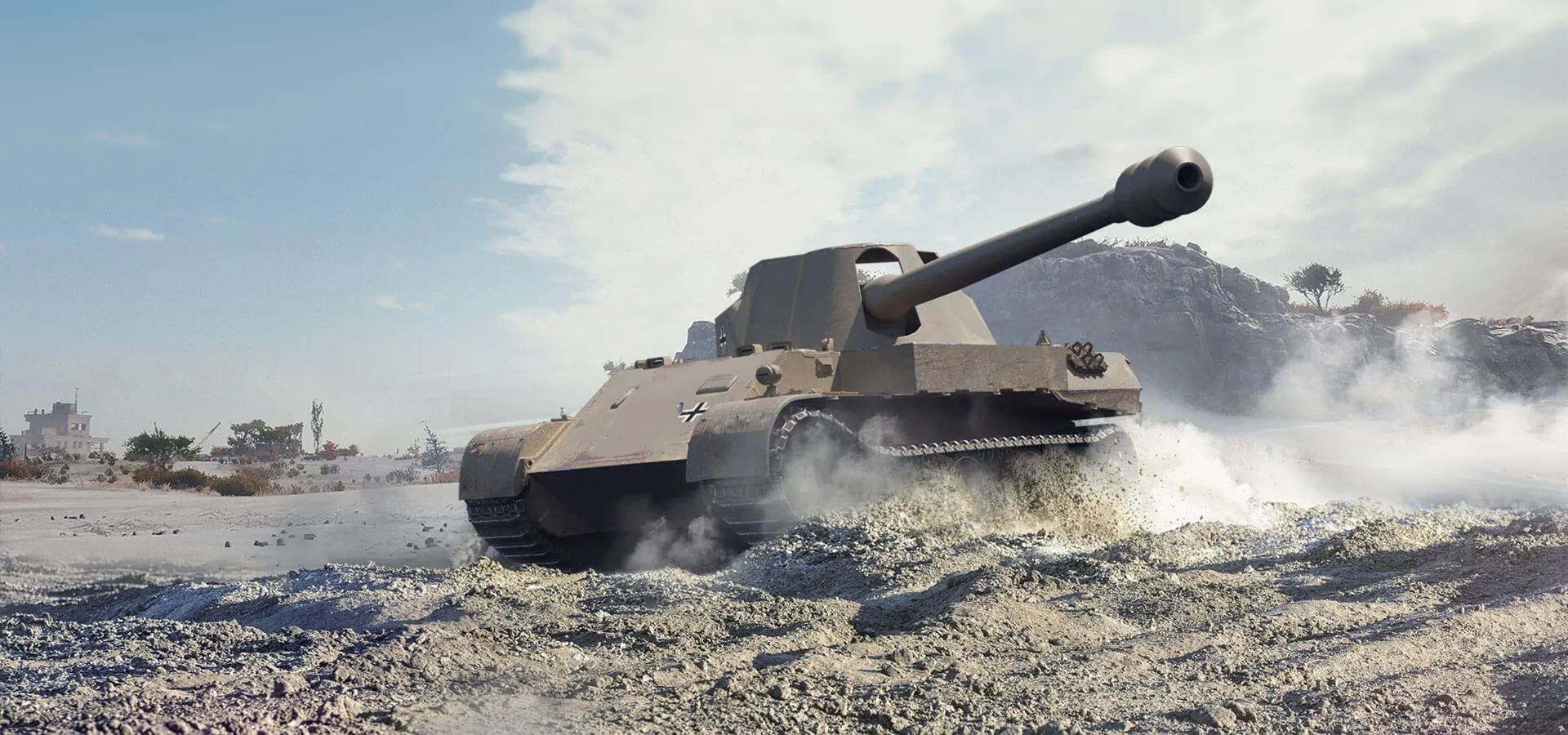 Вам уже хорошо знакома кастомизированная версия этой машины с пустынным камуфляжем песочного цвета и изображениями скорпионов. Rheinmetall Skorpion — брат-близнец без раскраски и с такими же ТТХ. Тот самый «Скорпион» с точным и мощным 128-мм орудием, вращающейся башней и комфортной подвижностью.