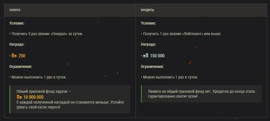 Впрочем, отлично пофармить можно, даже не занимая верхние позиции рейтинга. Или в ходе борьбы за них. Со специальными боевыми задачами на золото и кредиты!