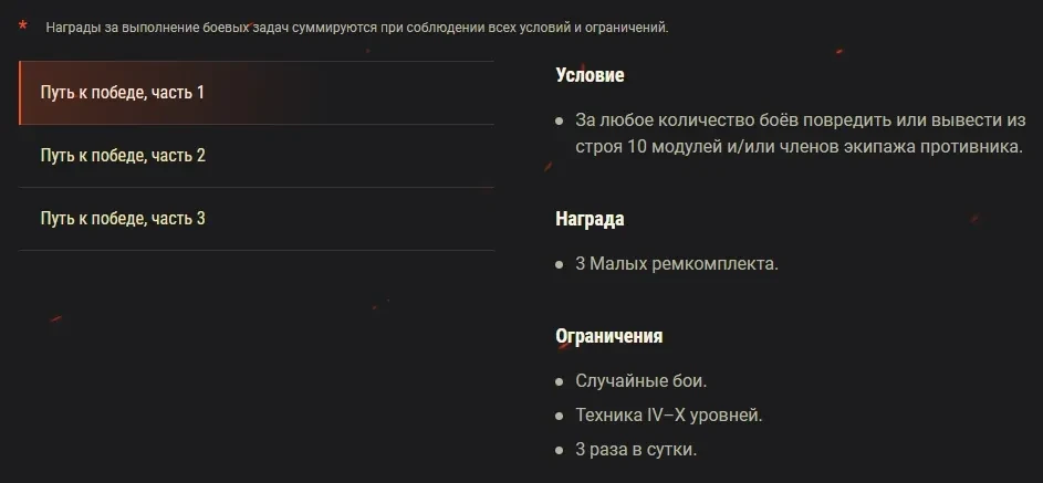 Боевые задачи: