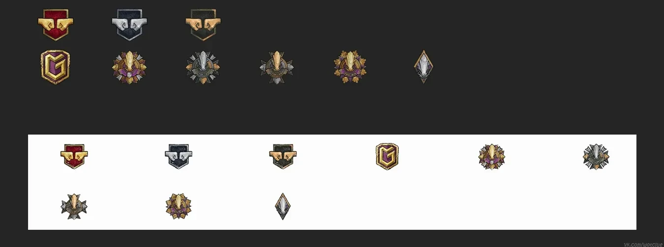 Новые большие декали кастомизации из текущего патча (1.5.1) World of Tanks, 9 шт. По сути это просто большие эмблемы/нашивки переработанные (тупо увеличенные и всё) в декали, хз зачем, некрасиво же.