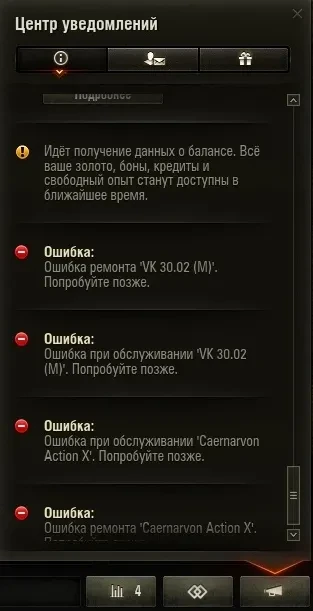 Также в игре не показывает валюты и невозможно произвести ремонт техники.