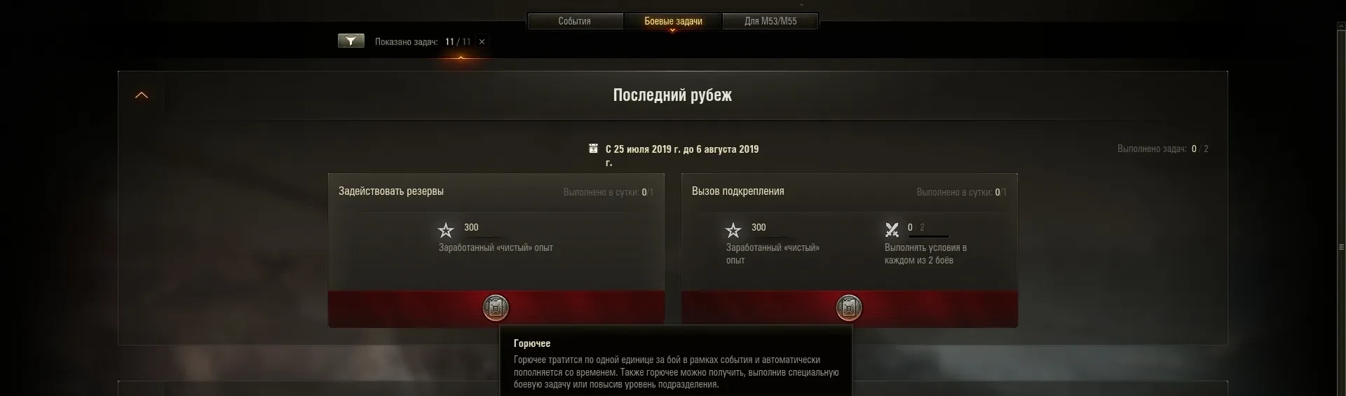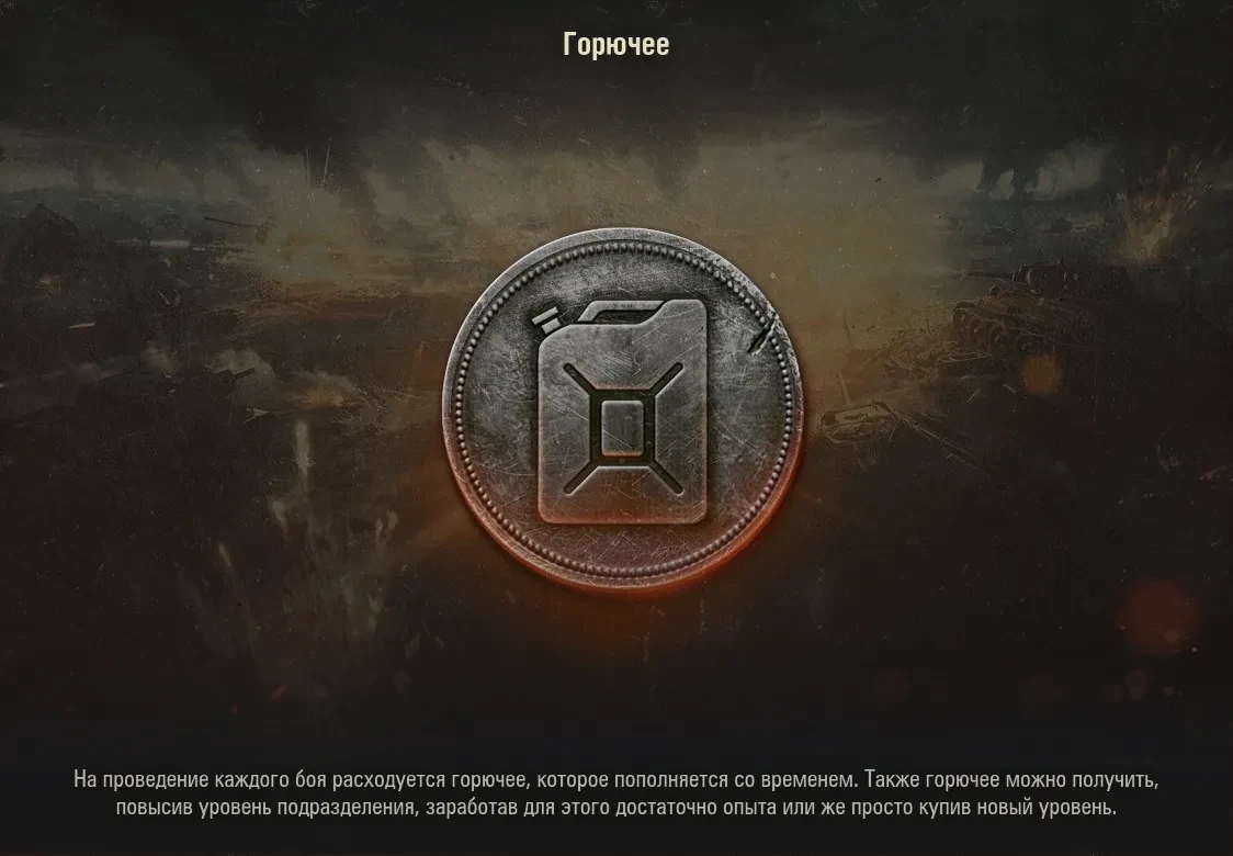 На бои на «Последнем рубеже» будет расходоваться специальный ресурс — горючее: 1 единица горючего = 1 бой в событии. Каждый день на склад будет поступать две единицы горючего. Оно будет накапливаться, даже если вы не заходите в игру. Горючее также можно получить за повышение уровня каждого из подразделений: две единицы за второй уровень и четыре за третий. Кроме того, вы можете заработать дополнительное горючее за успешное завершение ежедневных боевых задач в случайных боях.