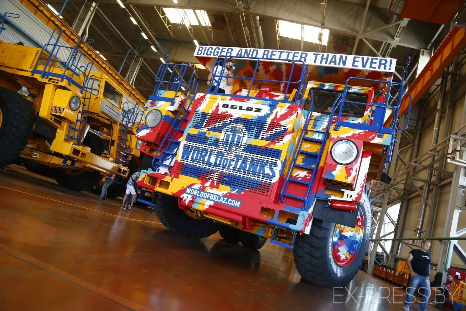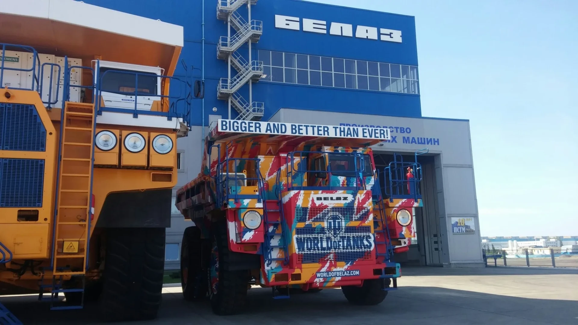 Утром, 27 августа на заводе БелАЗ в Жодино (Беларусь) состоялась презентация совместного проекта Wargaming и концерна БелАЗ – уникального 90-тонного самосвала БелАЗ 75585 в камуфляже праздника WG Fest: День танкиста.