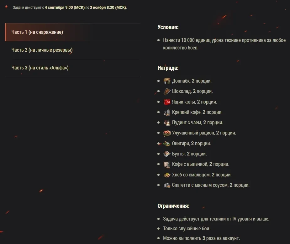 Отличные новости для держателей карт Wargaming. 4 сентября для вас стартует акция с боевыми задачами на снаряжение, личные резервы и уникальный стиль «Альфа»!