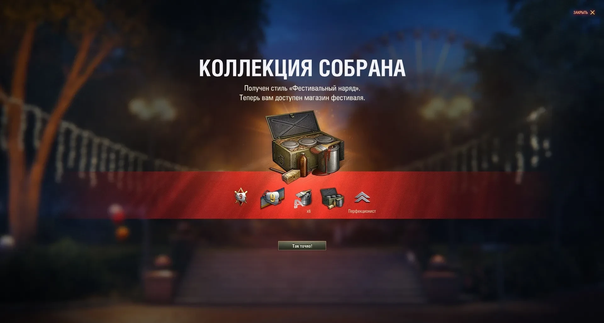 * Стиль «Фестивальный наряд» (WoT Fest 2019) за 105 собранных компонентов можно глянуть тут: ссылка.