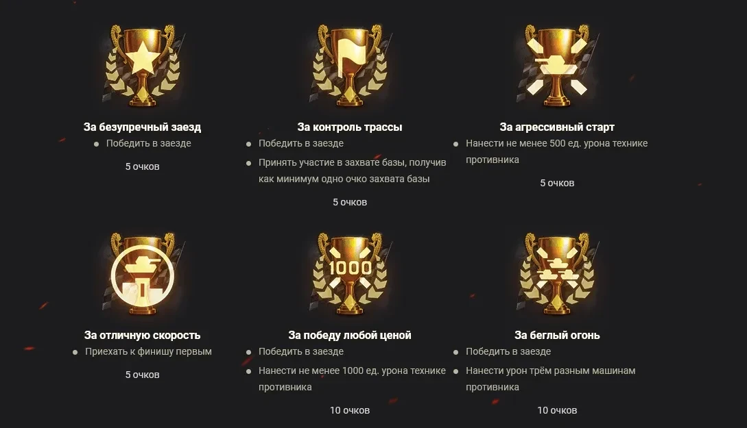 За свои личные достижения в «Больших гонках» вы можете получить следующие награды: