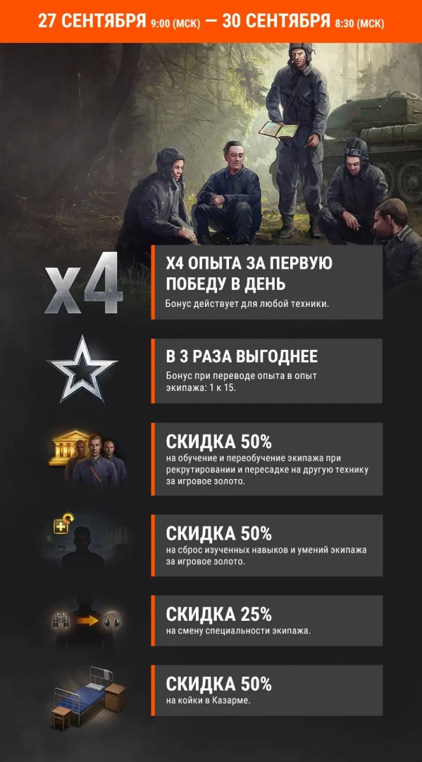С 27 сентября 09:00 (МСК) по 30 сентября 08:30 (МСК) вас ожидает:
