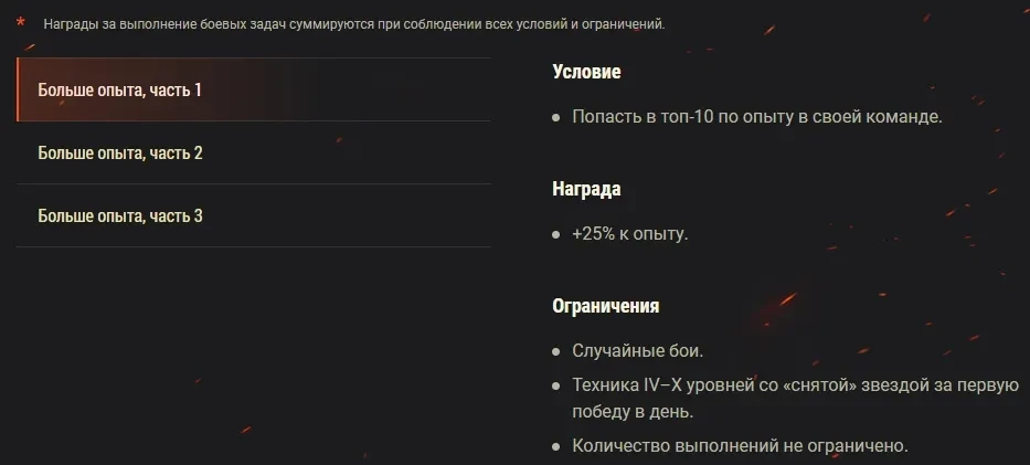 * Награды за выполнение боевых задач суммируются при соблюдении всех условий и ограничений.