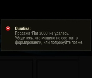 При продаже танка игроки могут столкнуться с ошибкой "Продажа не удалась. Убедитесь, что машина не состоит в формировании".