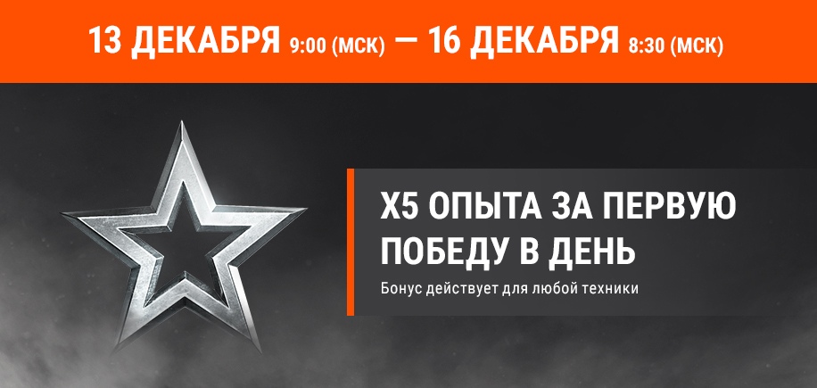 С 13 декабря 09:00 (МСК) по 16 декабря 08:30 (МСК) в World of Tanks вас ожидает: