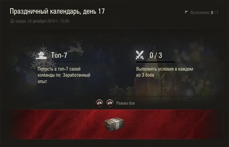Не забывайте каждый день активировать спец. задачу в клиенте игры (Ангар — стенд с календарём позади танка).