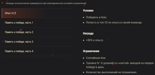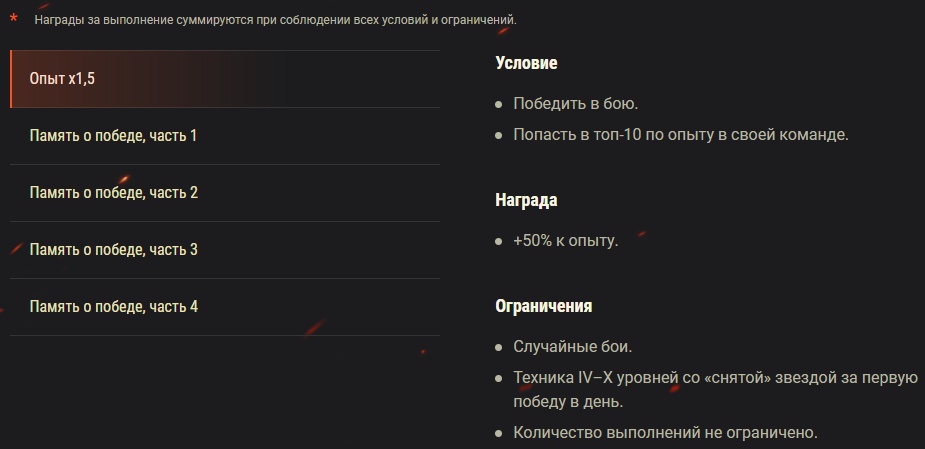 * Награды за выполнение суммируются при соблюдении всех условий и ограничений.