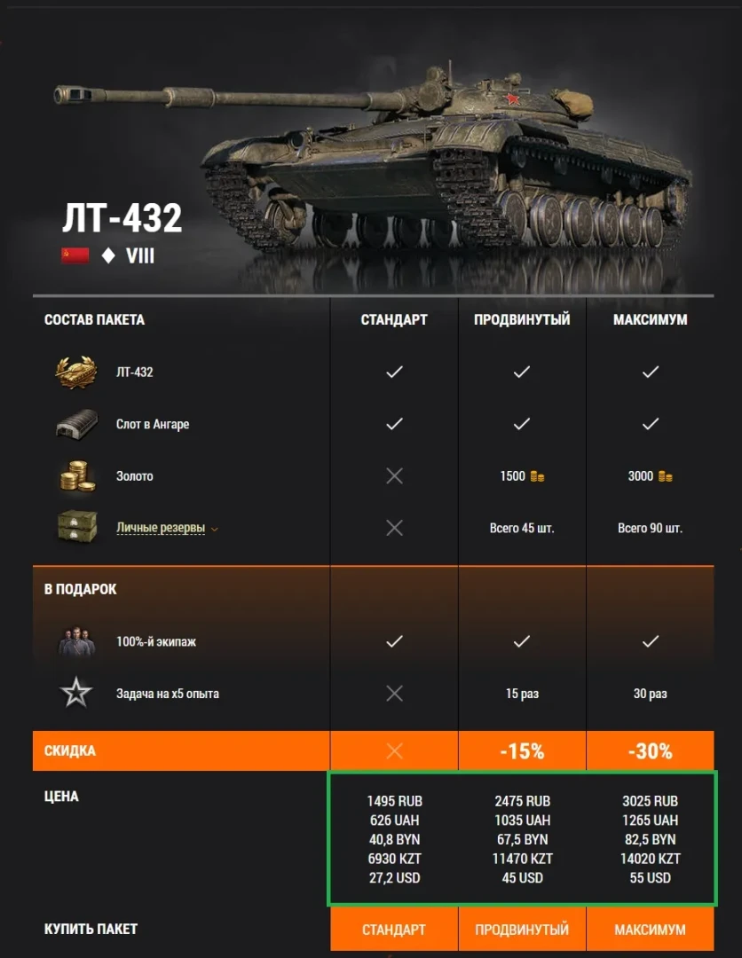 В этот раз танком недели в Премиум магазине World of Tanks объявляется ЛТ-432! Очень похожий в игровом плане на топовую машину советских «светляков» Т-100 ЛТ. Небольшой танк с отличными показателями маскировки и мобильности — настоящий разведчик. Универсальный. Незаметный. Опасный.