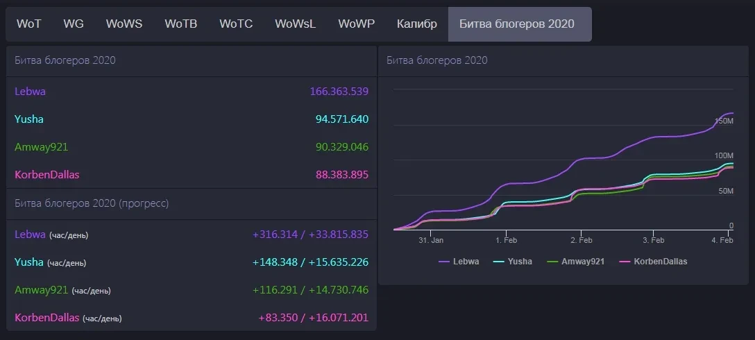 * Статистика ББ-2020 Online: wgstatus.com/#/ru/bob2020