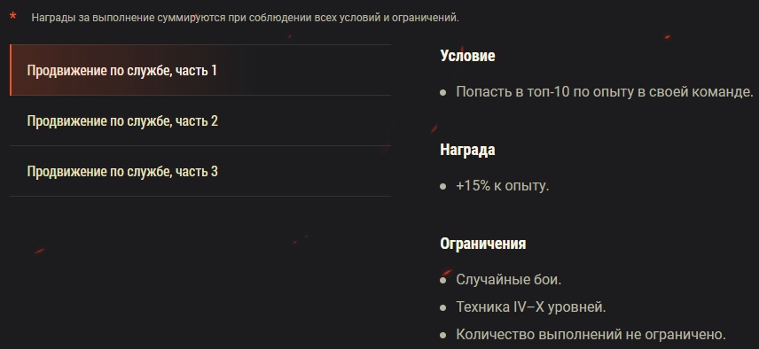* Награды за выполнение суммируются при соблюдении всех условий и ограничений.