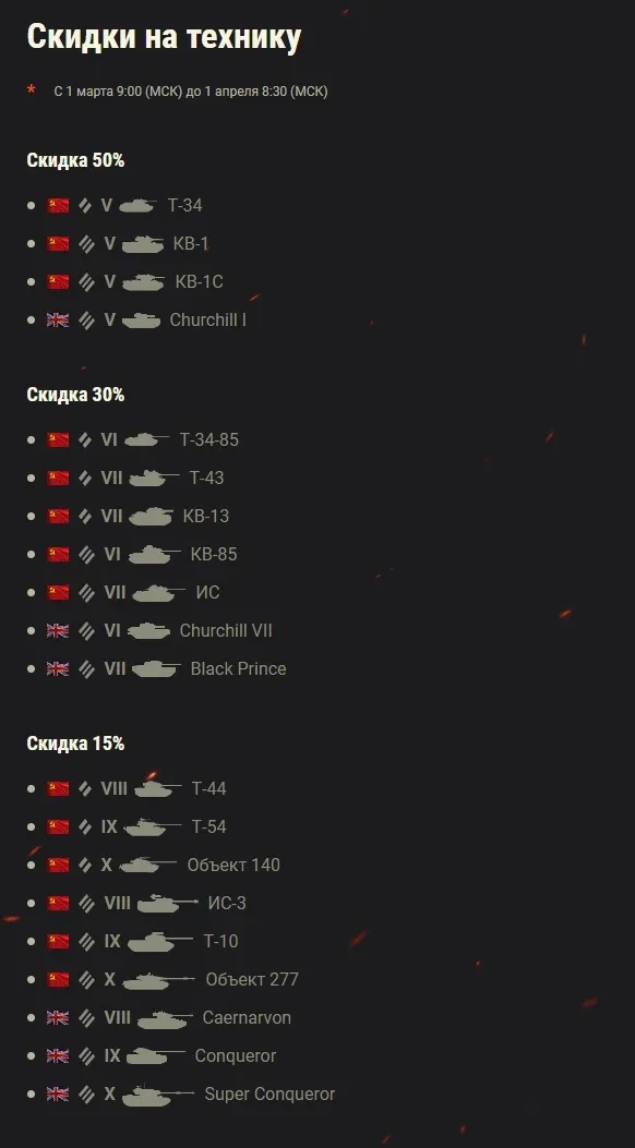 С 1 марта 09:00 (МСК) до 1 апреля 08:30 (МСК) в World of Tanks скидки и боевые задачи — сразу для трёх веток!