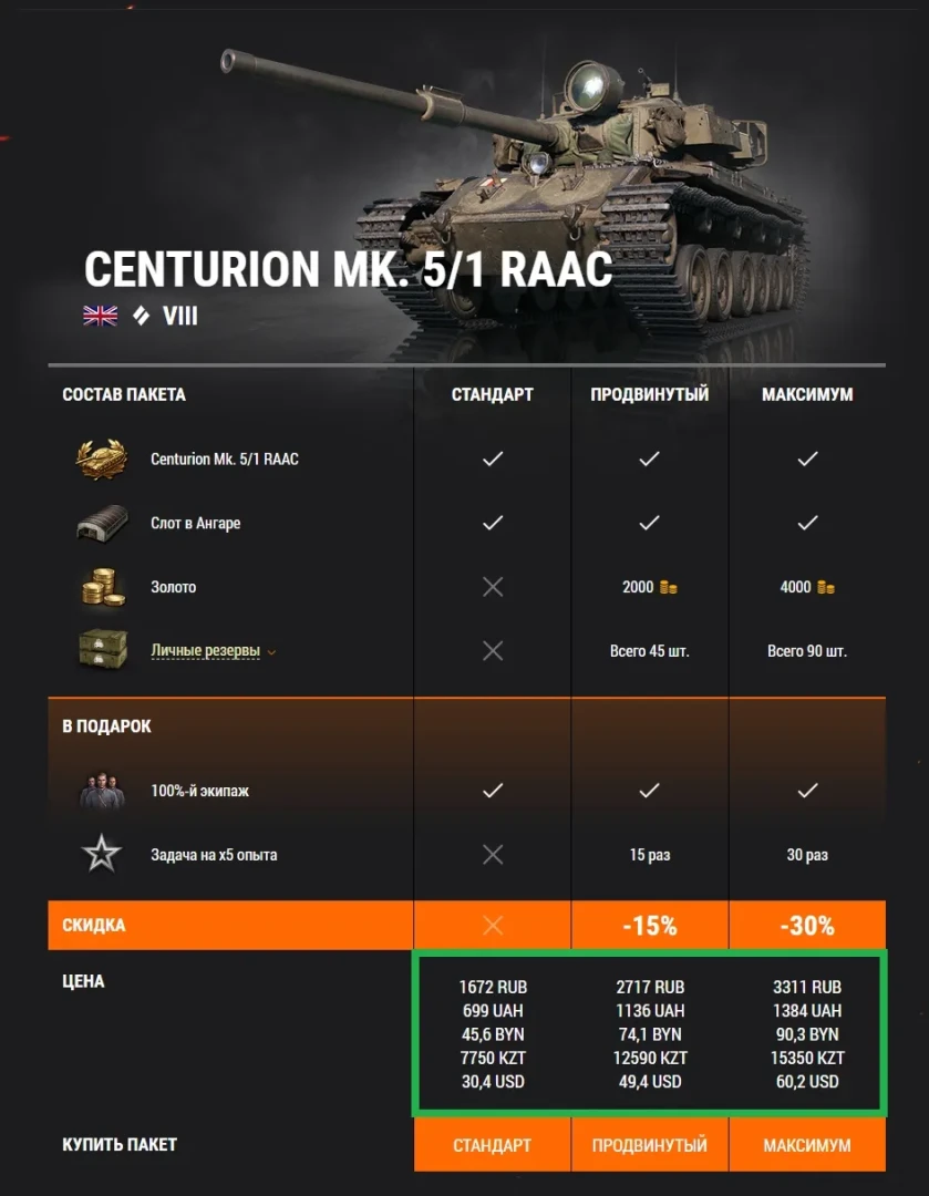 Встречаем танк недели в Премиум магазине World of Tanks — Centurion Mk. 5/1 RAAC!