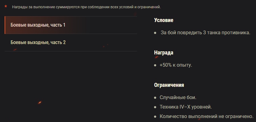 * Награды за выполнение суммируются при соблюдении всех условий и ограничений.