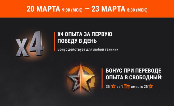 С 20 марта 09:00 (МСК) по 23 марта 08:30 (МСК) в World of Tanks вас ожидает: