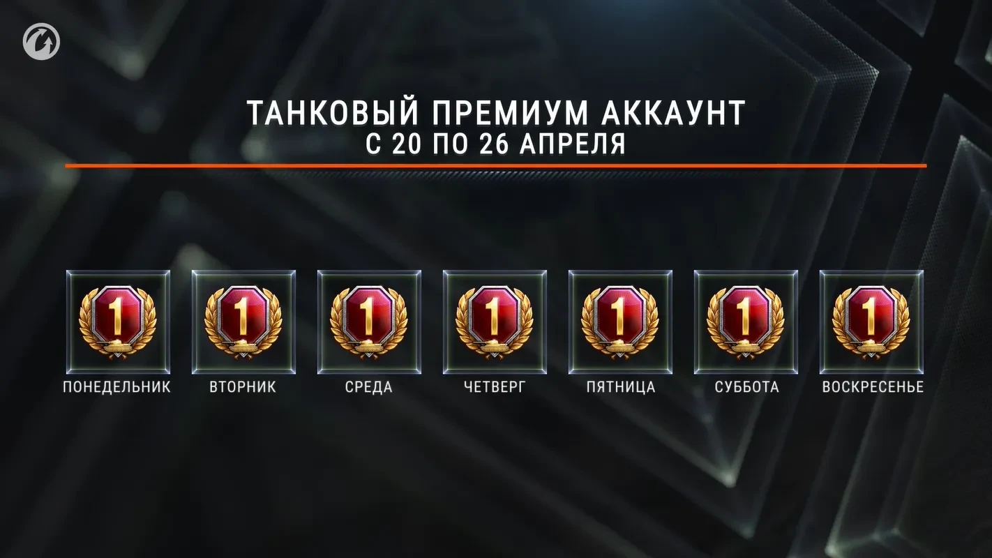 [20 апреля-26 апреля] 20 апреля с 09:00 (МСК) Танковый премиум аккаунт за Боевые задачи целую неделю (7 шт.) + 1 день бесплатно.