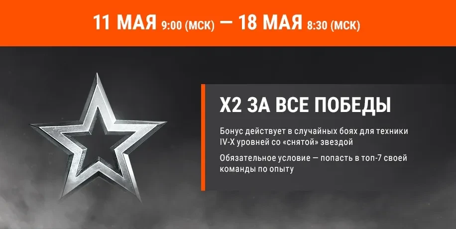 Бонус действует в случайных боях для техники IV-X уровней со «снятой» звездой.