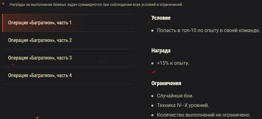 * Награды за выполнение боевых задач суммируются при соблюдении всех условий и ограничений.
