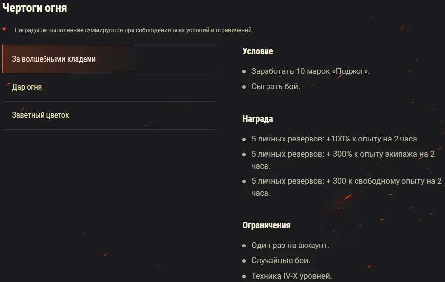 Награды за выполнение суммируются при соблюдении всех условий и ограничений. - Чертоги огня