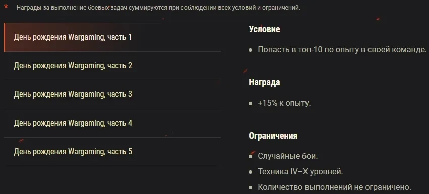 * Награды за выполнение боевых задач суммируются при соблюдении всех условий и ограничений.