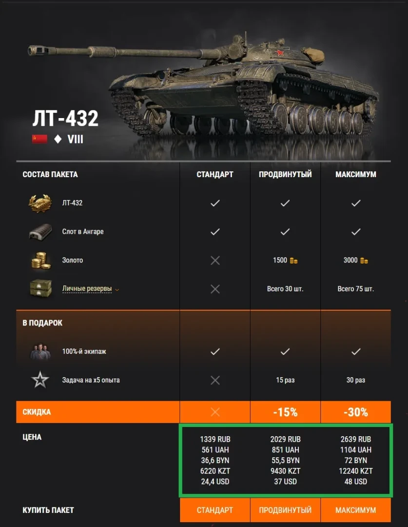 - прем танк 8 лвл ЛТ-432