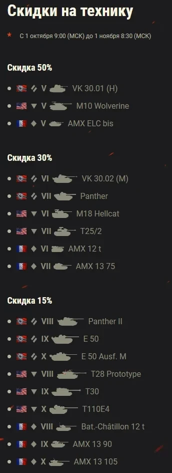 С 1 октября до 1 ноября скидки и боевые задачи — сразу для трёх веток в World of Tanks!